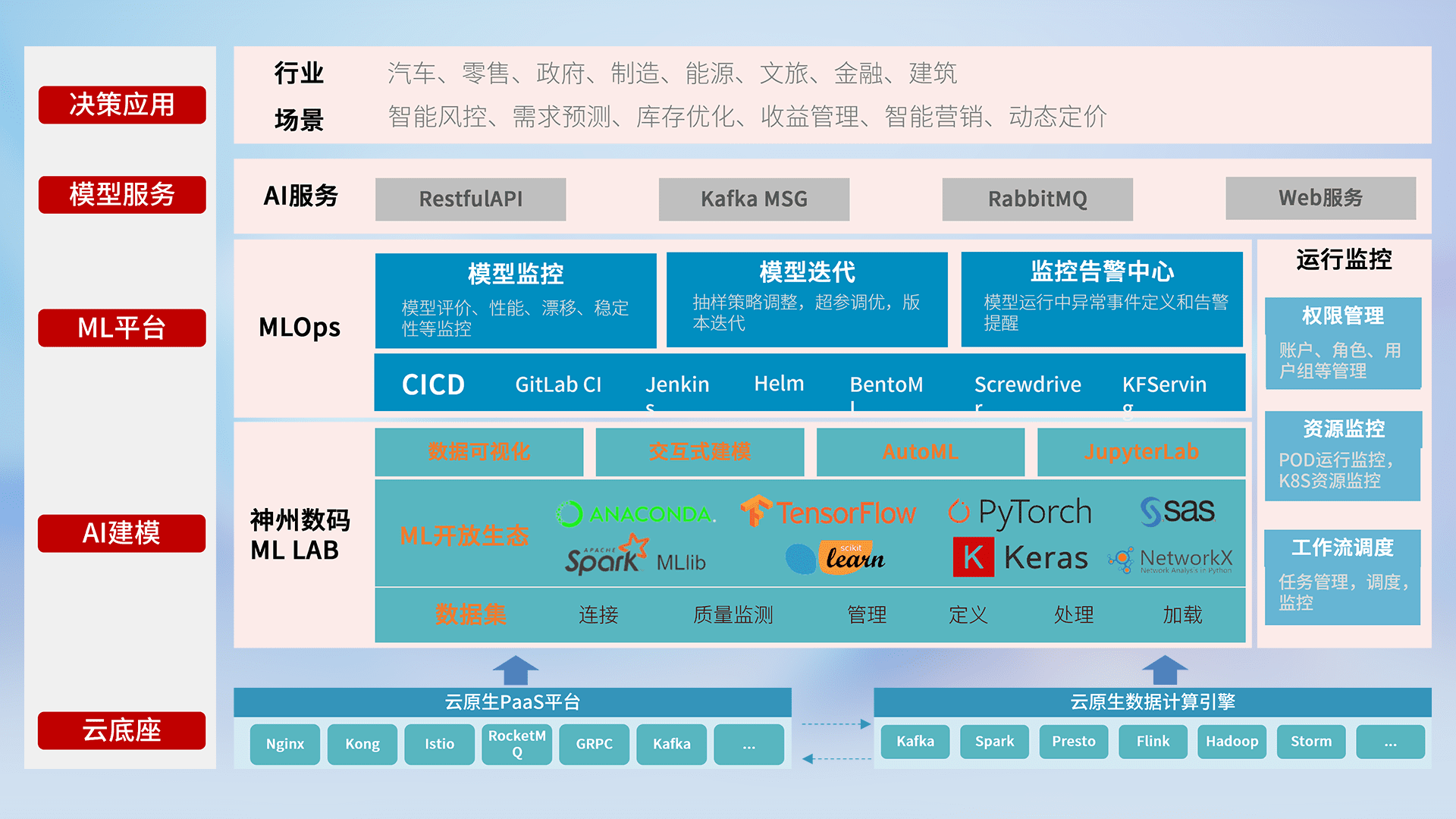 数据+模型双引擎驱动,,,,面向智能服务场景,,快速灵活利用AI技术,,,支持业务决策,,,,助力企业智能化转型破局。。